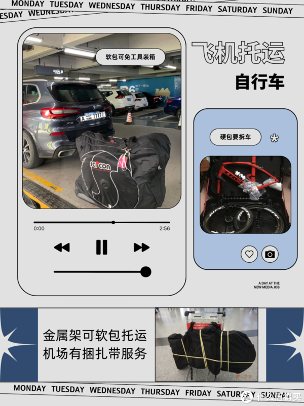 关于飞机托运的一些小tips除了车,还可以把骑车的行李什么的放到装车箱里,一般超过一两公斤没事,超多了可以象征性的拿点东西出来就行,最多的一次整重有25公斤。